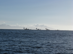 風は南が吹き、海上は凪ぎ。