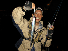 シーバス・太刀魚・アジ・エソ・ダツの二人で五目達成。