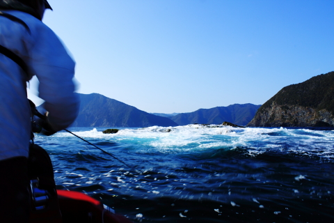 南風で潮は東へ流れる。