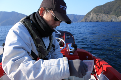スローテンポな釣りで体が冷える。 寒い。