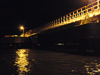 ボートは、潮と風の流れで徐々にバースから遠ざかりグラデーションを掛けるように暗くなっていく。