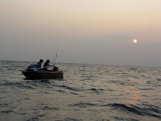 そんなこんなで、空が白み始めたので海上で
